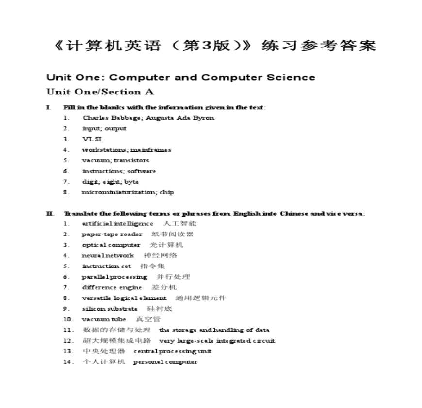 > 《计算机英语(第3版)》(刘艺_王春生)练习参考答案