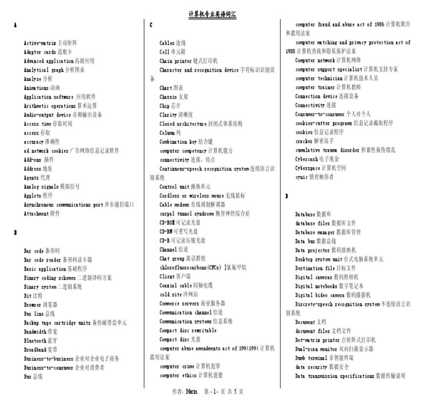 计算机专业英语词汇大全(非扫描版)资料下载,喜欢的朋友可以下载收藏!