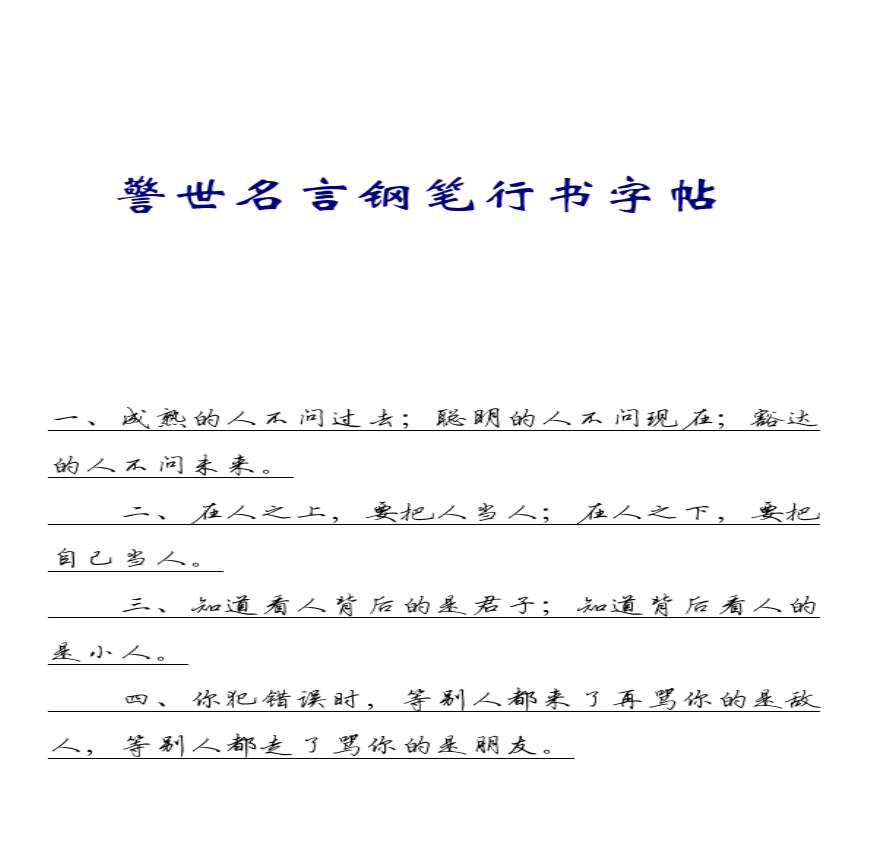 警世名言钢笔行书字帖资料下载,喜欢的朋友可以下载收藏!