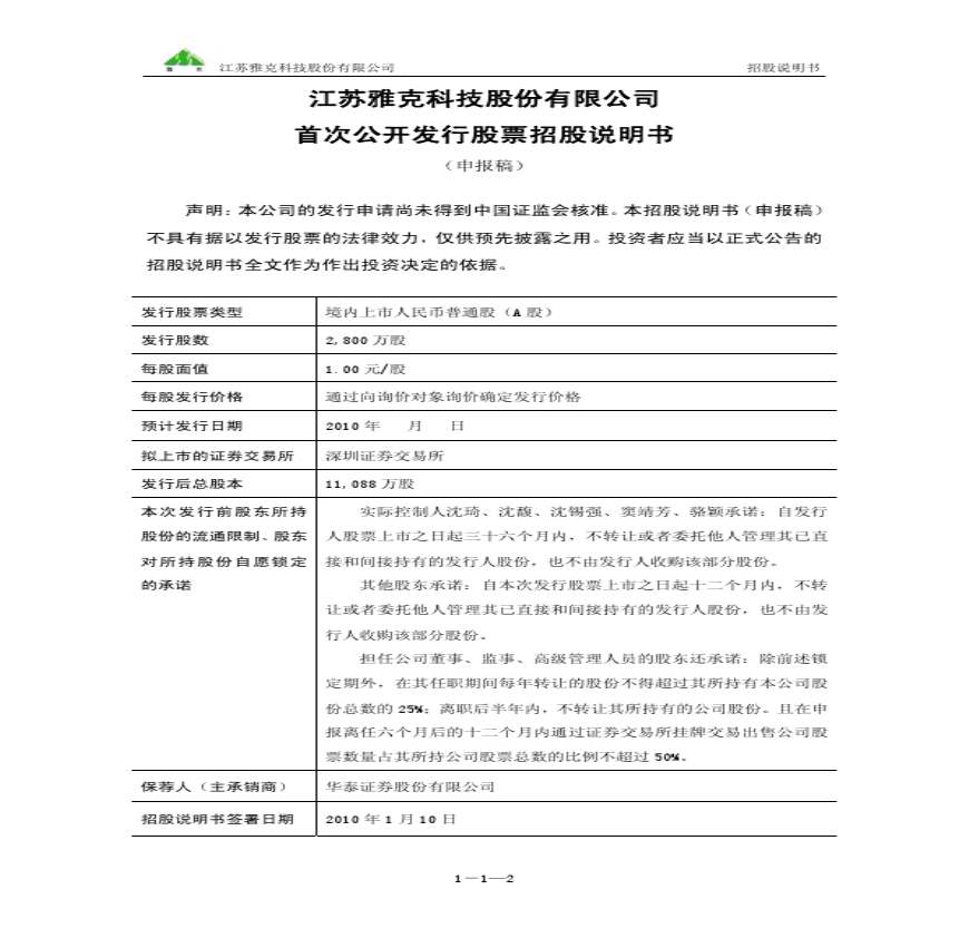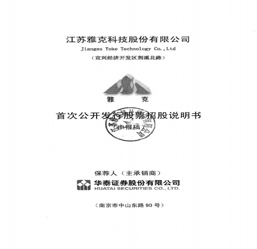 江苏雅克科技股份有限公司首发招股说明书资料下载,喜欢的朋友可以下载收藏!