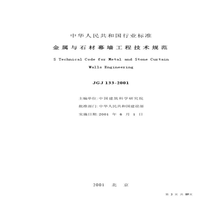金属与石材幕墙工程技术规范【JGJ133-2001】.pdf 免费下载