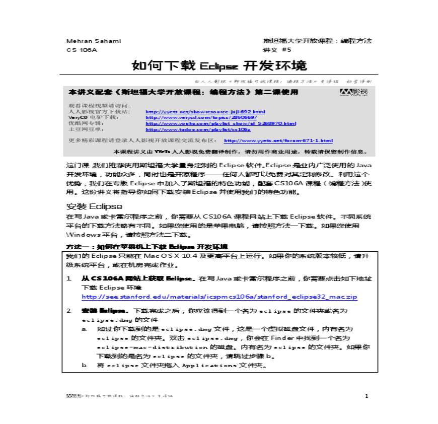 【YYETS人人影视】《斯坦福开放课程:编程方法》—— 上传人:鄙人学识浅薄 ·《斯坦福开放课程:编程方法》专译组 Mr S 斯坦福开放课程:编程方法CS A # E浏览器访问E官,点击下载进入下载页面,点击D P下载JEE版本的E(我用的在下载镜像选择页面,点击 D专译组MrS斯坦福开放课程:编程方法CSA#如何下载如何下载E 简介:本文档为《—— 次阅读&b发表时间:年月日一、及安装、进入官: 全文在线看x文档 学习资料页 Mr S 斯坦福开放课程:编程方法 CS A如何下载E开发环境如如何何下下载载EE开开发发环环境境由