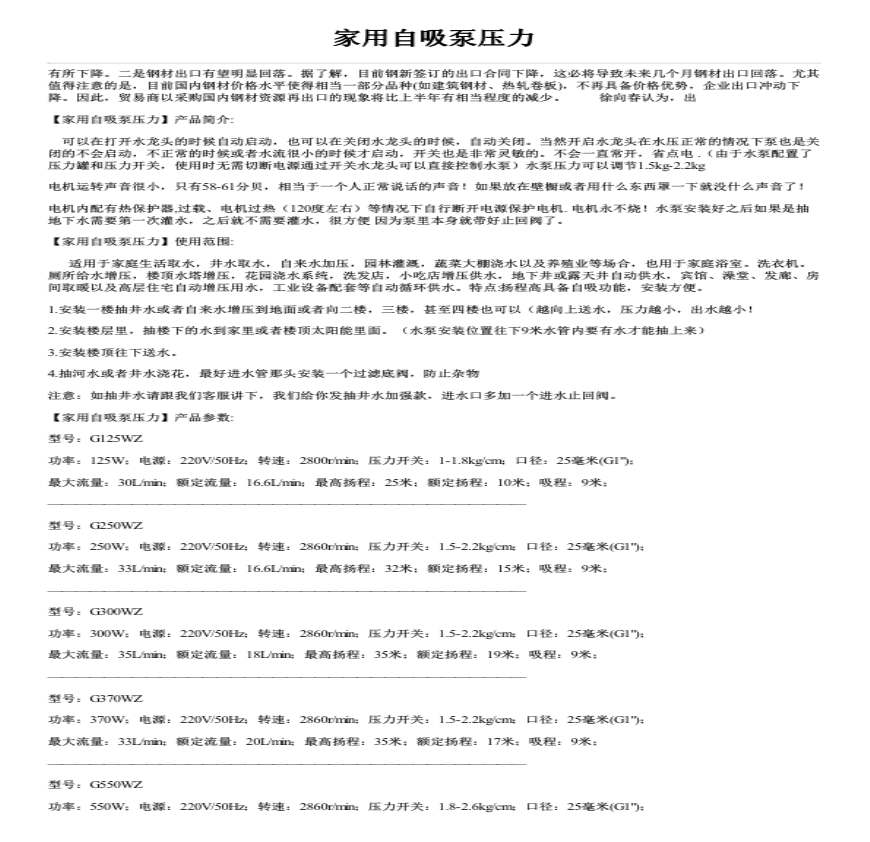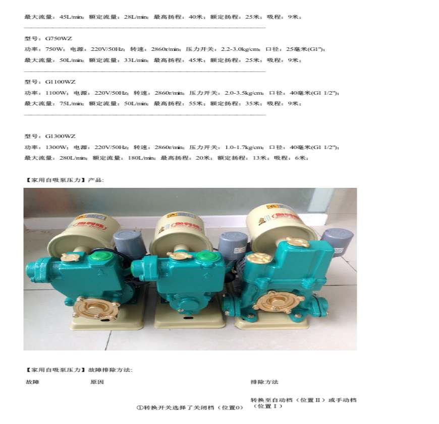 家用自吸泵压力性能参数故障原因及排除方法资料下载,喜欢的朋友可以下载收藏!