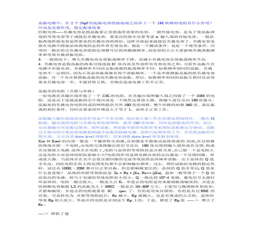 从能量的角度来说,正弦波振荡器是通过自激方式把直流电能转换为特定频率 学习资料 晶振电路中,在 个 的起振电容的接地端之间串上一个 M欧姆的电阻有什么作用?应该是反馈作用,稳定振荡效果匹配电容