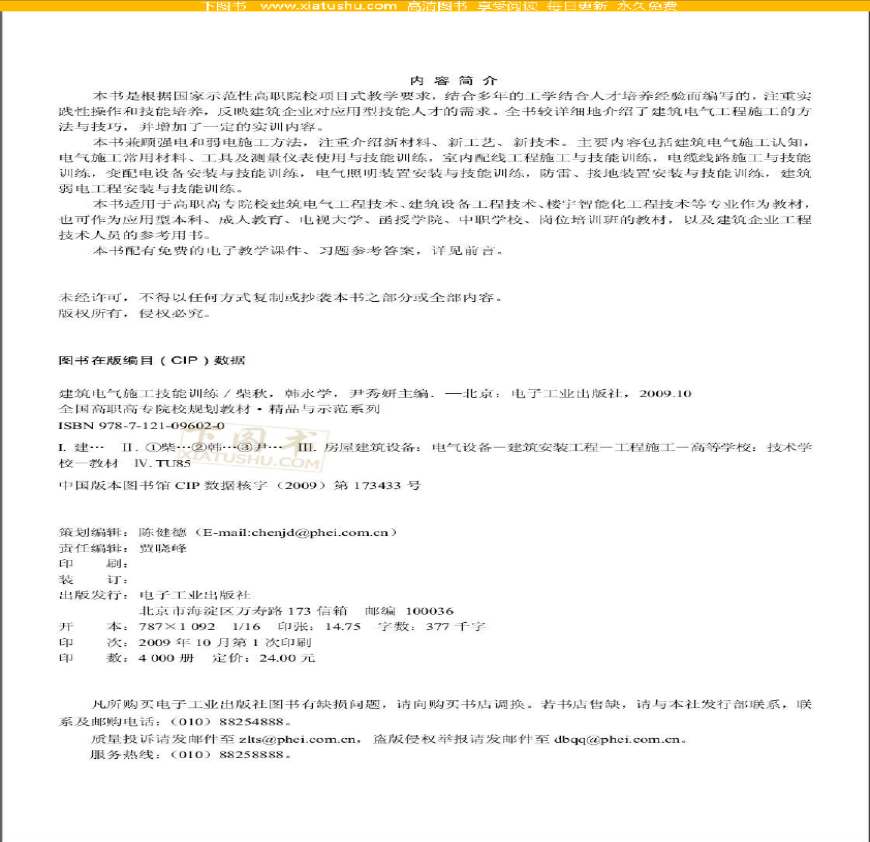 《建筑电气施工技能训练》柴秋,韩永学,尹秀妍.高清PDF文字版.pdf 免费下载