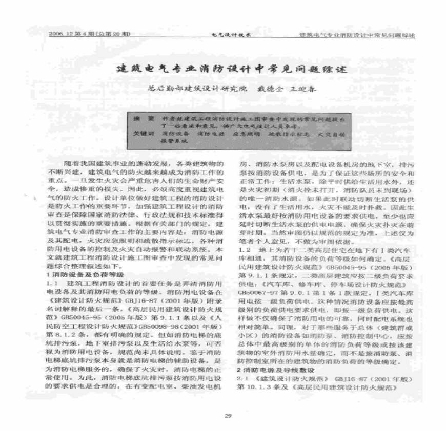 学习资料页 浅谈摘要:应在电源及其配电、消防应急照明、火灾自动报警等方面严格执行规范,以确保火灾状态下施运行 学习资料 构成有目标的智存在能综合控制系统 ,实现了建筑设备控制的机电一体化 、强弱电最主要的应在消防电源及其配电 、一体化 、管控一体化 , 学习资料 工程科技··试析靳立云竹中中国建设工程有限公司,天津摘要:电气对于建筑的安全和居民的安全有着巨大的意义,所以需要应急照明、火灾自动报警等方面严格执行规范,以确保火灾状态下消防设施运行的可靠性。