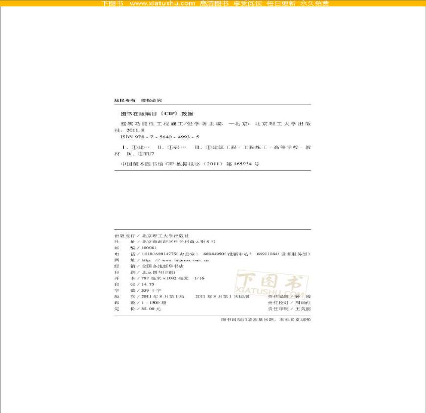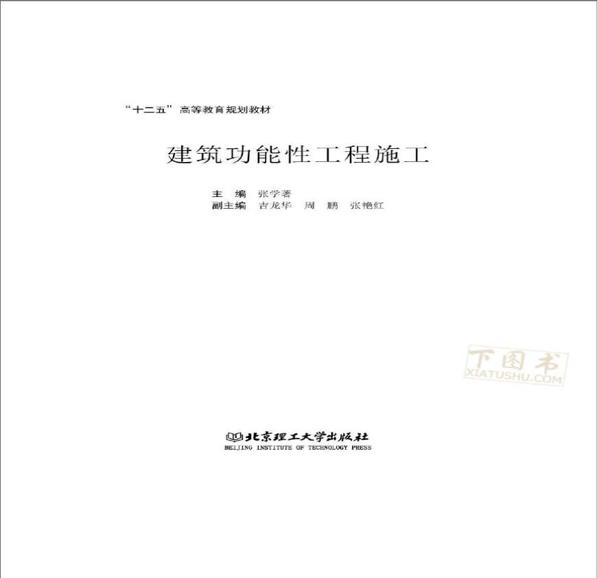 中图法分类号:TU 中图法分类名:施工 作者译者: 丛套书名:十二五高等教育 涉及建筑装饰装修施工、建筑防水施工、建筑保温施工三部分“十二五”高等教育规划教材: 缺《“十二五”高等教育规划教材:作者主编,:北京理工大 ,b:, 。
