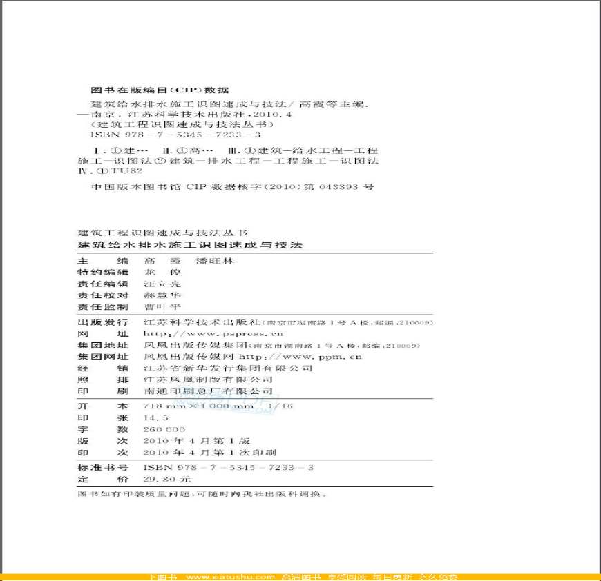 > 《建筑给水排水施工识图速成与技法》高霞,潘旺林.高清PDF文字版