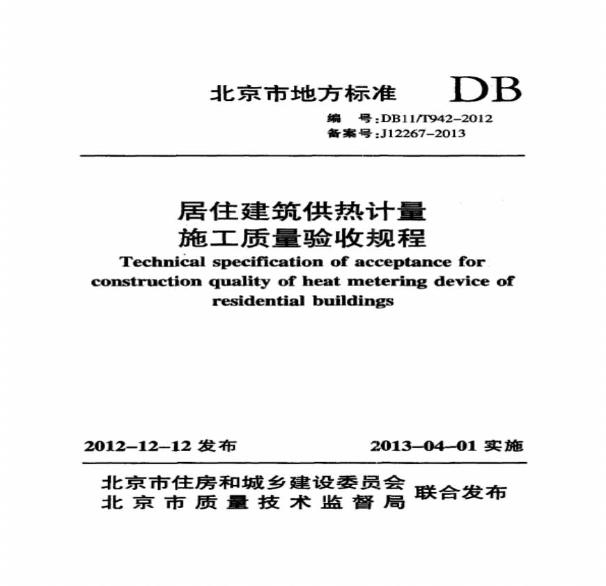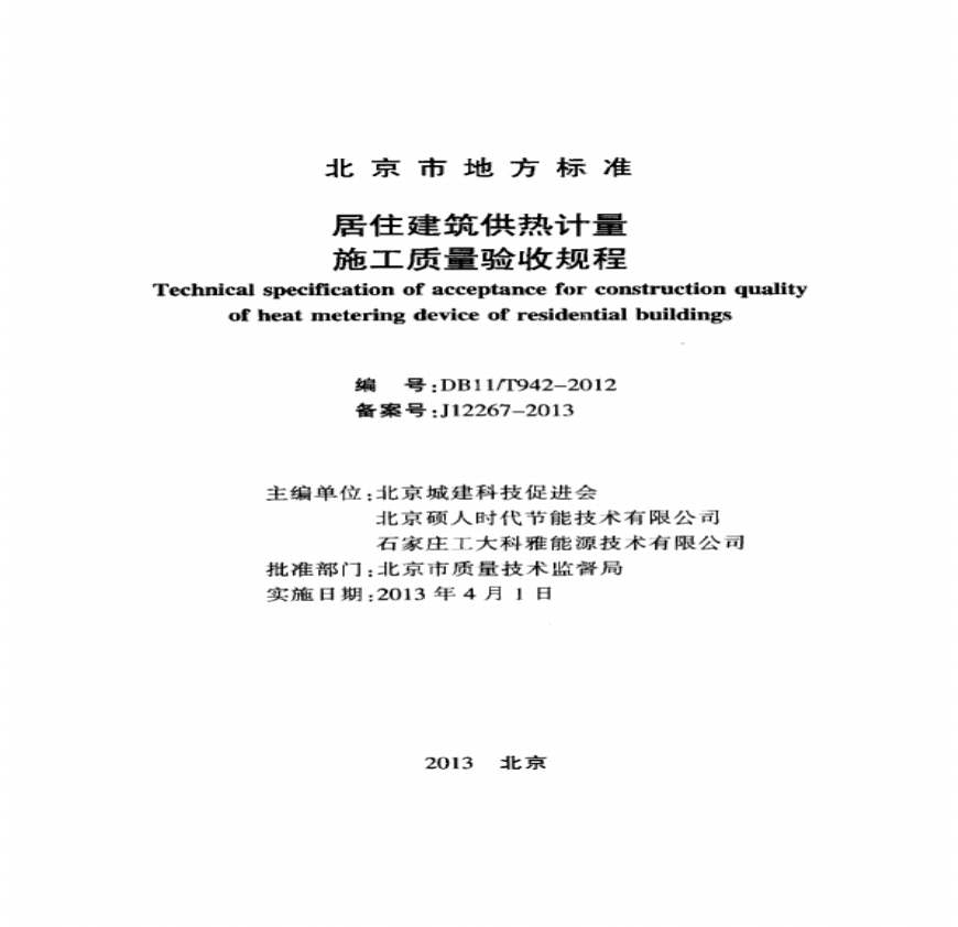 居住建筑供热计量施工验收规程DB11/T942-2012.pdf 免费下载