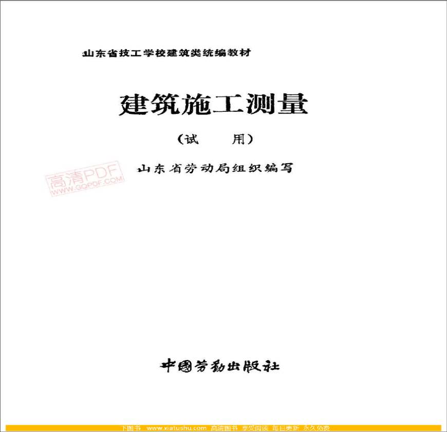 《建筑施工测量:试用》山东省劳动局.高清PDF文字版资料下载,喜欢的朋友可以下载收藏!
