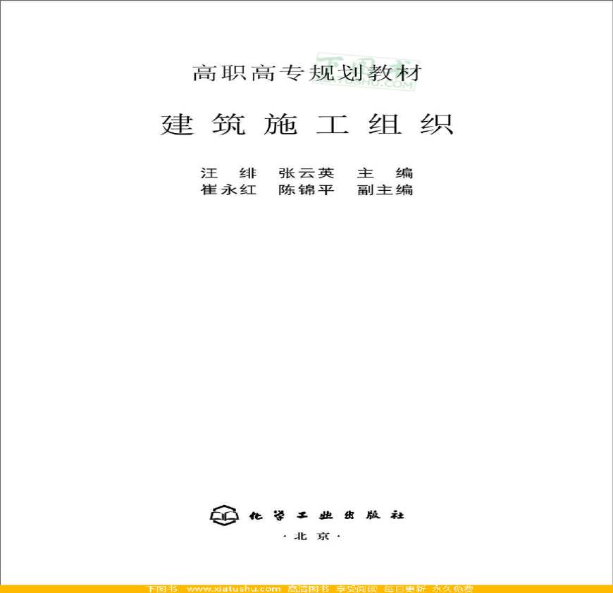 本书共分九章,内容包括:施工组织基本知识、施工准备工作、流水施工、络计划技术及其应用、施工组织总设计的编制、单位工程施工组织设计的
