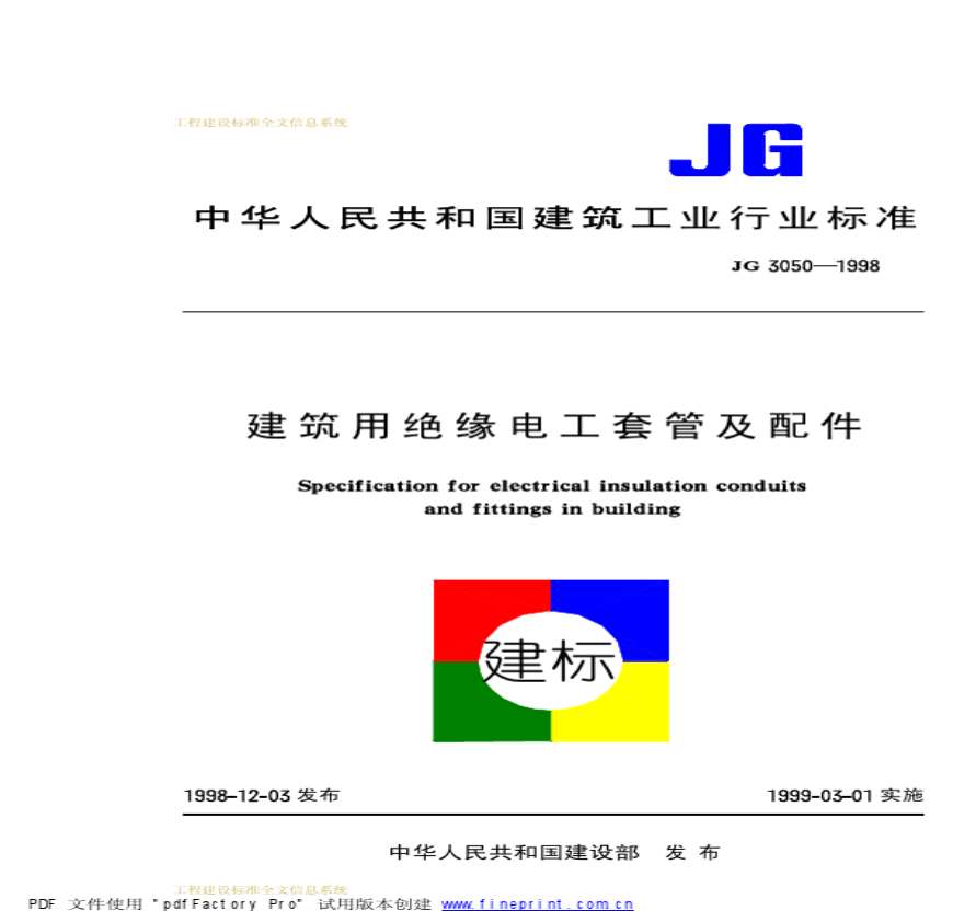 建筑用绝缘电工套管及配件JG3050-1998.pdf 免费下载