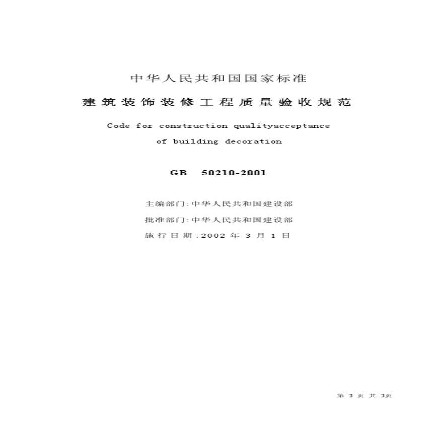 优质文档上传时间:UDC中华人民共和国国家GB施工CrArObr发布实施中华人民共和国建设部、中华:b 学习资料页 *欧阳光明*创编欧阳光明()总则为了加强管理,统一建筑装饰装修工程的质量验收,保证