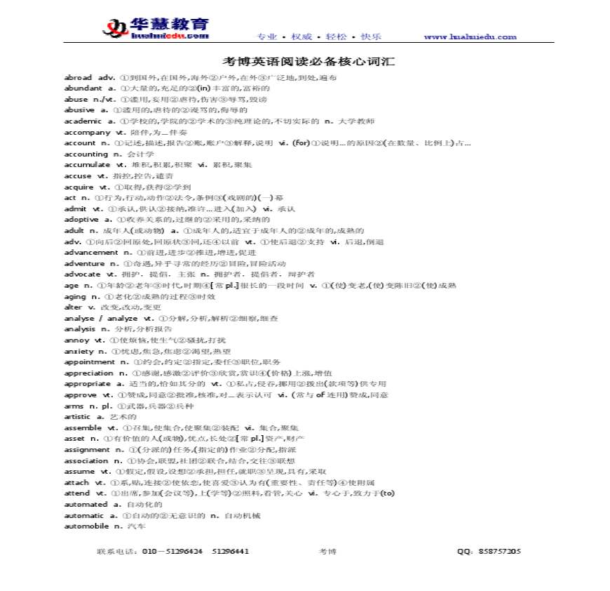考博英语阅读必备核心词汇资料下载,喜欢的朋友可以下载收藏!