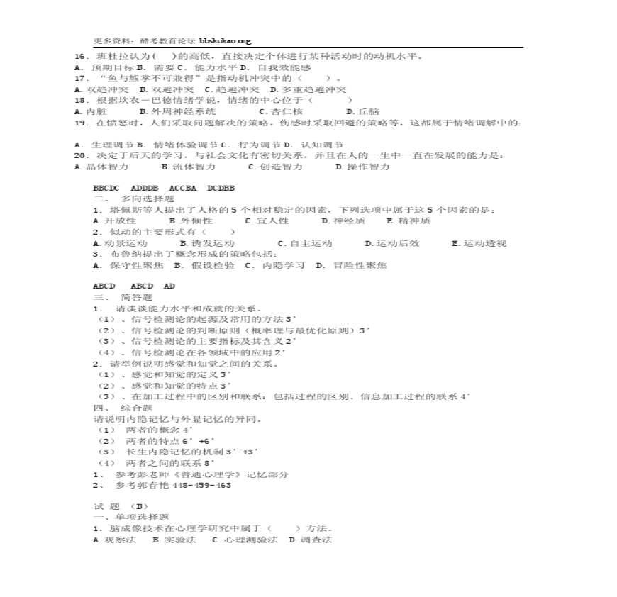 酷考教育学考研-预测模拟题系列-----普通心理学.pdf 免费下载