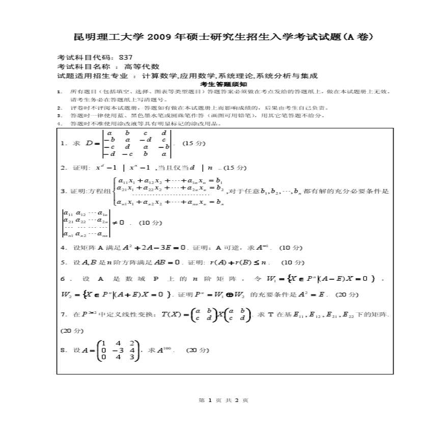 理工 第 页共 页理工年硕士研究生招生入学考试试题(A卷)考试科目代码:考试科目名称 :试题适用招生专业 :计算数学,应用数学,系统理论,系统 {{$N :理工理工 全套精品资料 分享于 : 文档页数: 页 文档热度: 文档分类: 待分类 文档标签: 理工高等代数学习资料页 理工 格式:DOC 页数: 上传日期: :: 用稻壳阅读器打开 道客 理工考研试题 学习资料