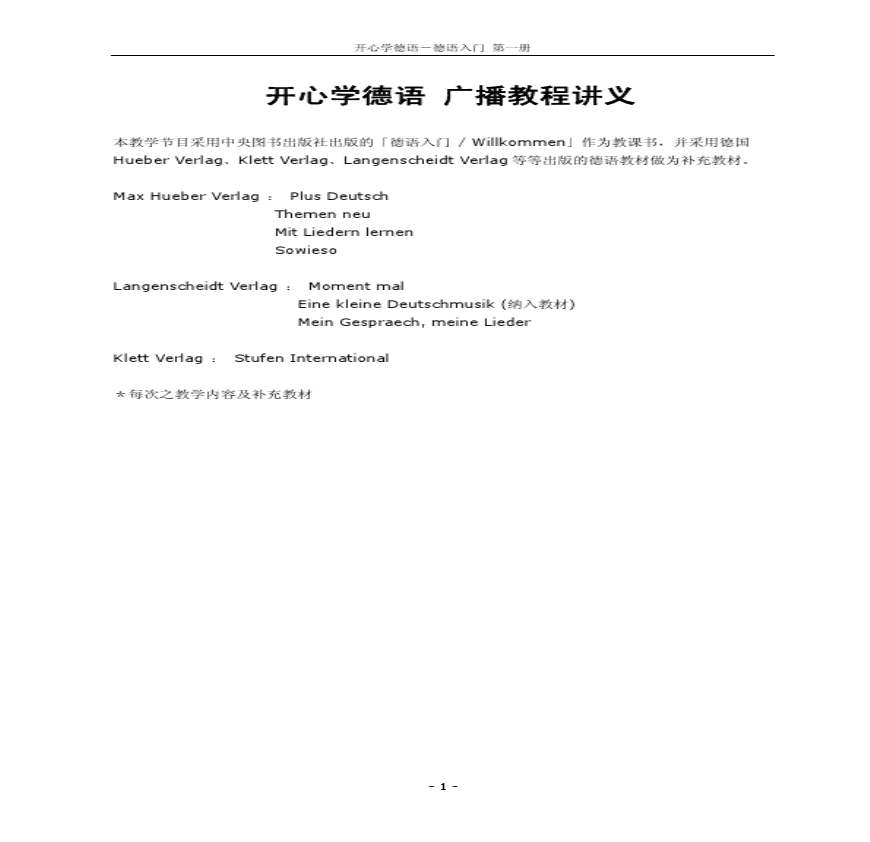 开心学德语广播教程讲义资料下载,喜欢的朋友可以下载收藏!