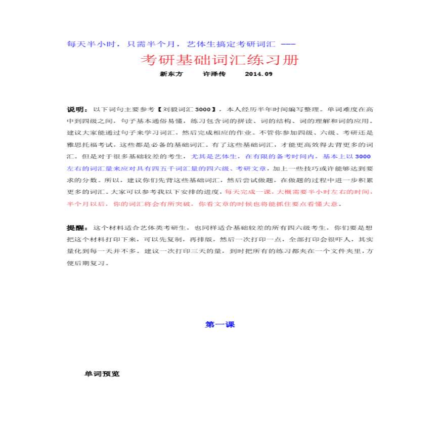 【新概念英语二】°新概念英语二】°考 新概念英语二词汇练习册 说明:该内容分为两个部分,第一部分为新