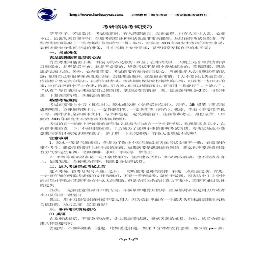 考研临场考试技巧培训资料下载,喜欢的朋友可以下载收藏!
