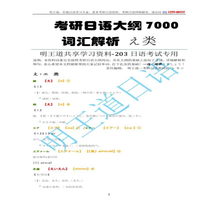 考研日语大纲 7000词汇解析 え类资料下载,喜欢的朋友可以下载收藏!