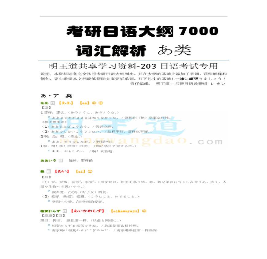 考研日语大纲 7000词汇解析 あ类.pdf 免费下载