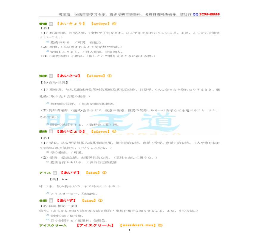 > 考研日语大纲 7000词汇解析 あ类