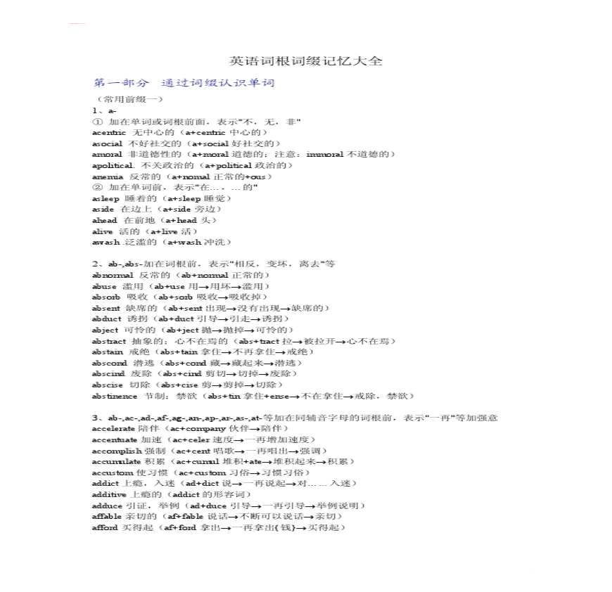 考研英语词根词缀记忆大全资料下载,喜欢的朋友可以下载收藏!