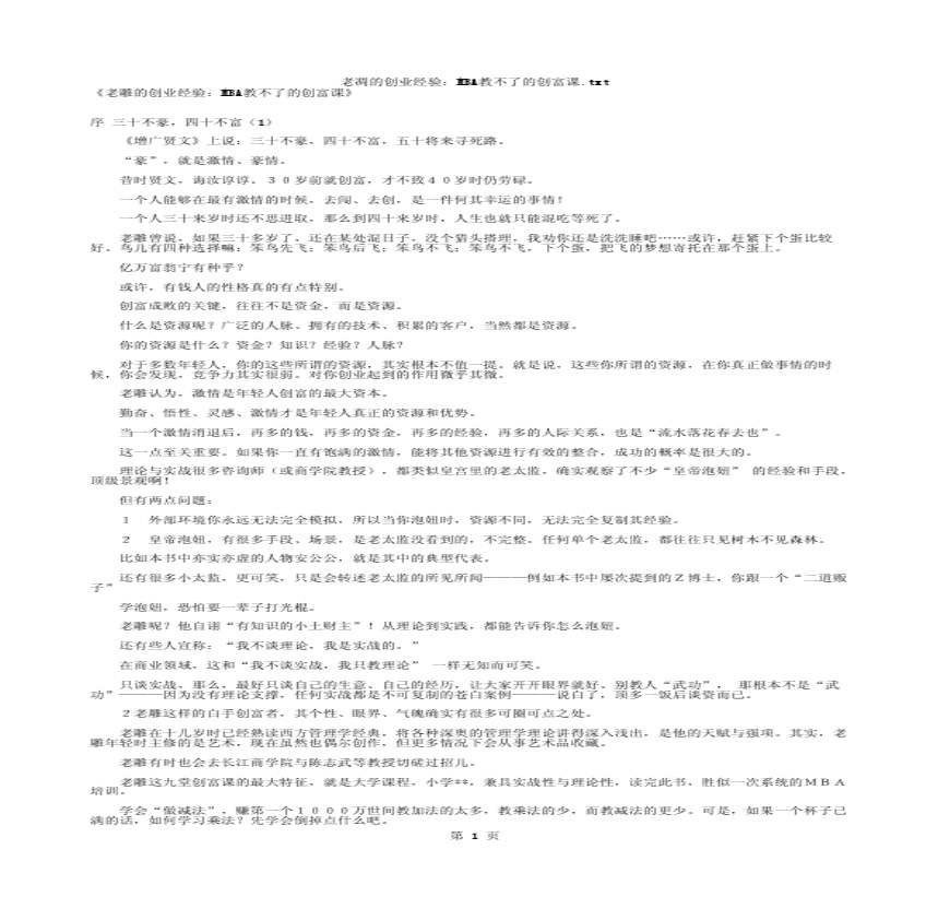 老凋的创业经验:MBA教不了的创富课.pdf 免费下载