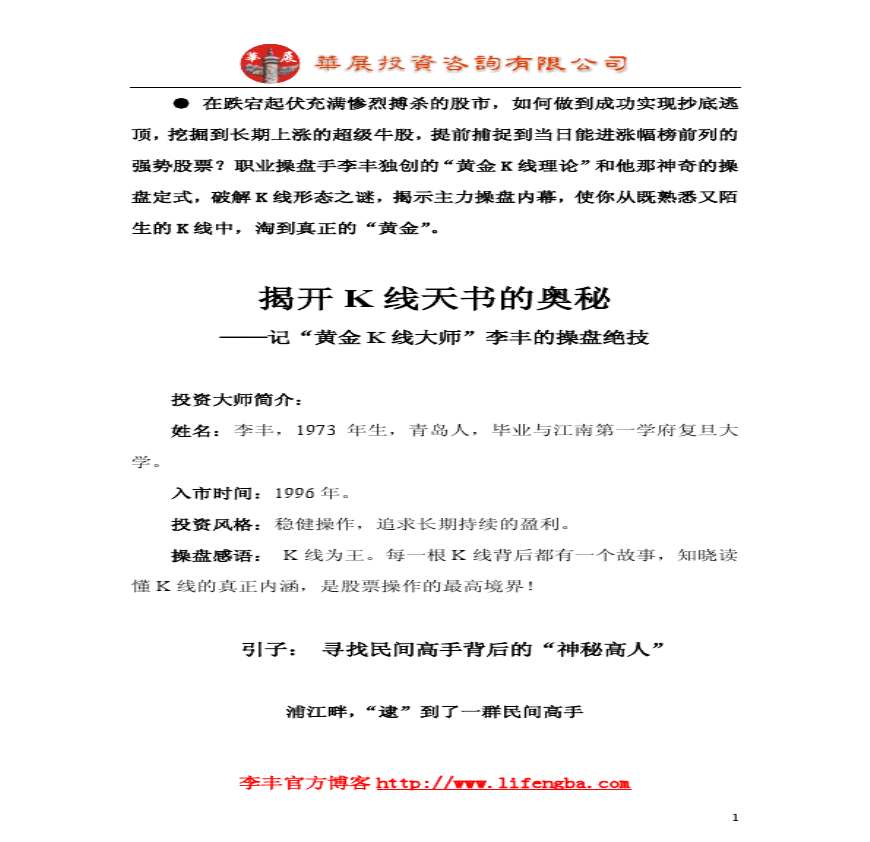李丰黄金K线教程资料下载,喜欢的朋友可以下载收藏!
