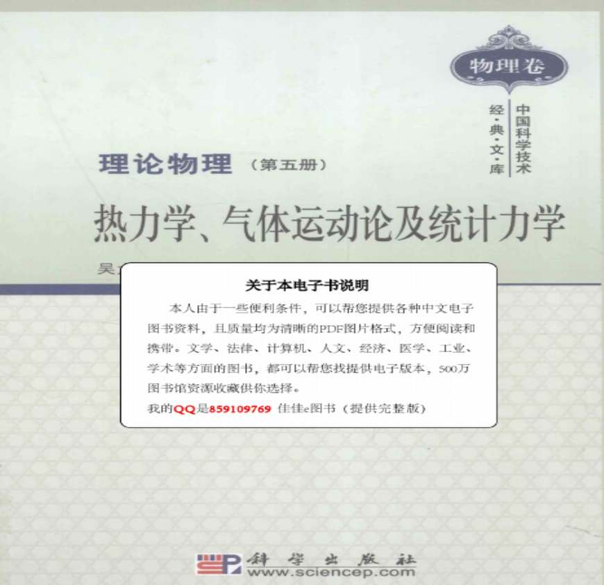 理论物理 第5册 热力学、气体运动论及统计力学_吴大猷著_北京:科学_2010.09_330页资料下载,喜欢的朋友可以下载收藏!