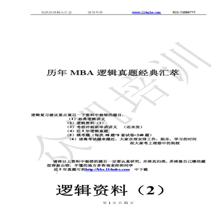 历年MBA逻辑真题经典汇萃.pdf 免费下载