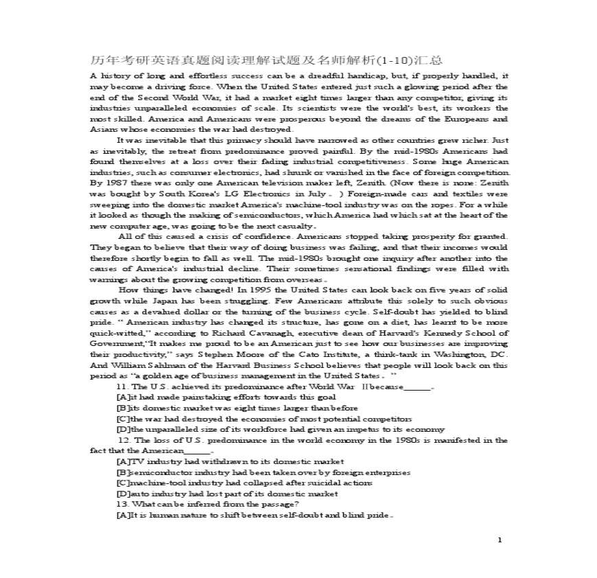 历年考研英语真题阅读理解试题及名师解析汇总【共10套】.pdf 免费下载