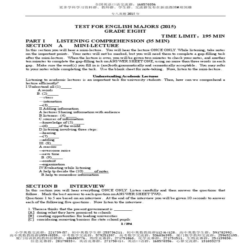 历年英语专业八级真题及答案资料下载,喜欢的朋友可以下载收藏!