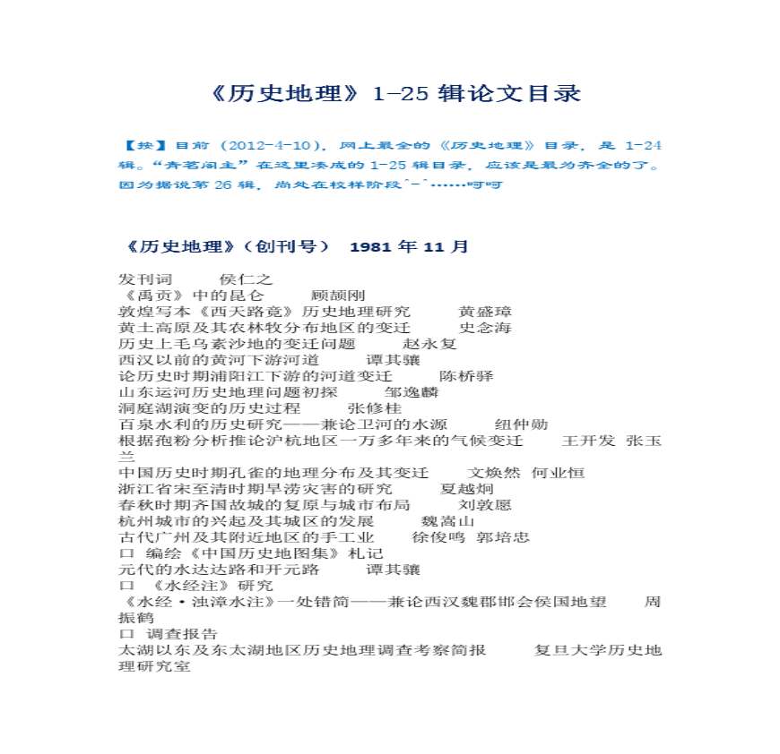 《历史地理》1-25辑论文目录.pdf 免费下载