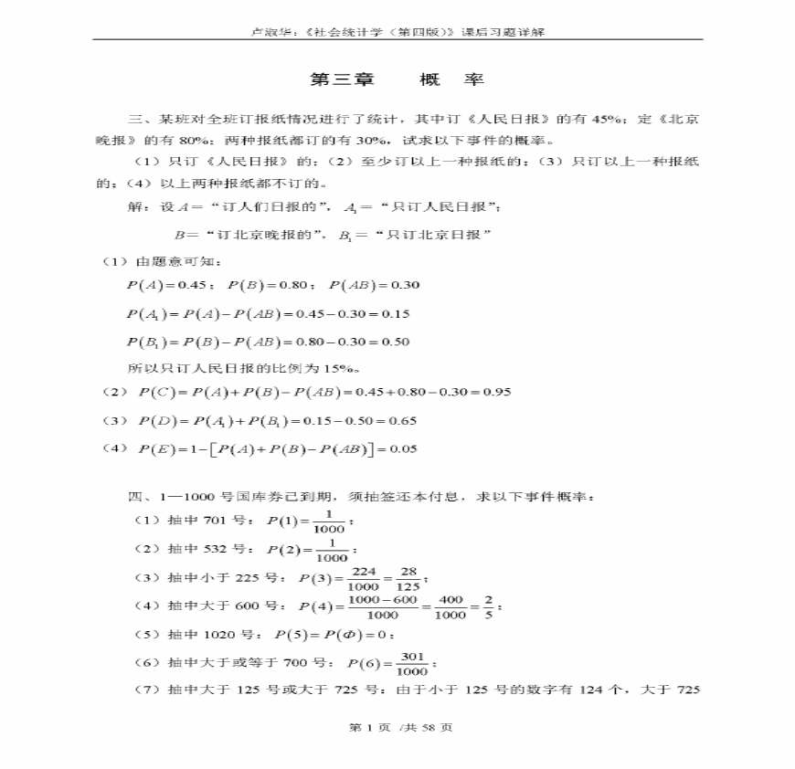 卢淑华:《社会统计学(第四版)》课后习题详解(资料下载,喜欢的朋友可以下载收藏!