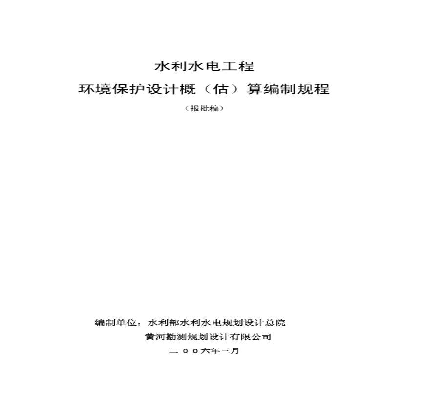 水利水电环境概预算 水利水电环境概预算 水利水电工程环境保护设计概估算编制规程报批稿编制单位水利部水利水电规划设计总院黄河勘测规划设计有限公司