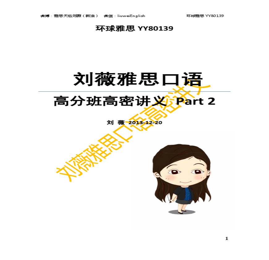 刘薇雅思口语高分班内部高密讲义二(20131220)资料下载,喜欢的朋友可以下载收藏!
