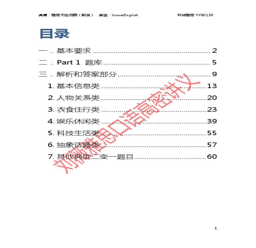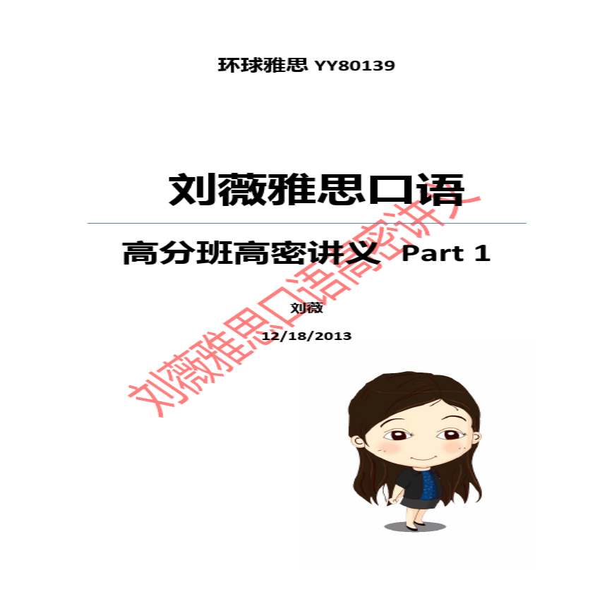 刘薇雅思口语高分班内部高密讲义一(20131218)资料下载,喜欢的朋友可以下载收藏!