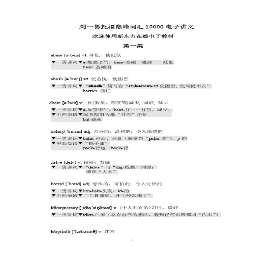 刘一男托福 10000词汇讲义-巅峰词汇部分资料下载,喜欢的朋友可以下载收藏!