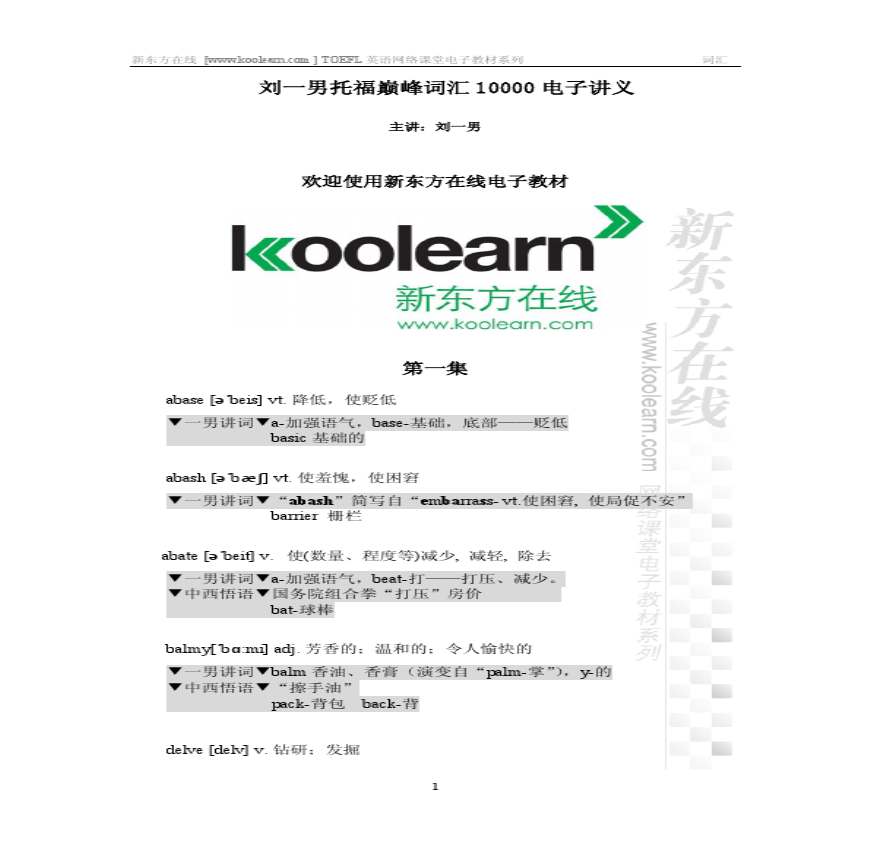 刘一男托福巅峰词汇PDF版资料下载,喜欢的朋友可以下载收藏!
