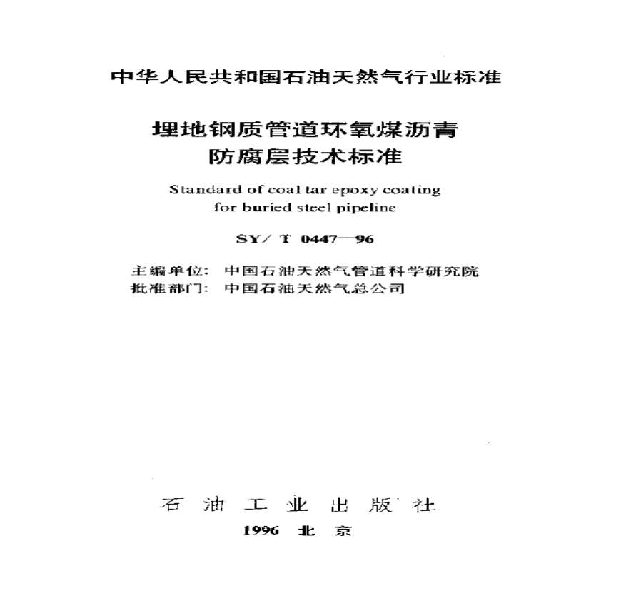 埋地钢质管道环氧煤沥青防腐层技术标准SYT0447-96资料下载,喜欢的朋友可以下载收藏!
