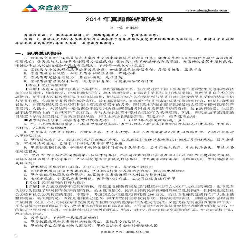 > 民法-吴一鸣-真题解析-北京真题解析班2013....