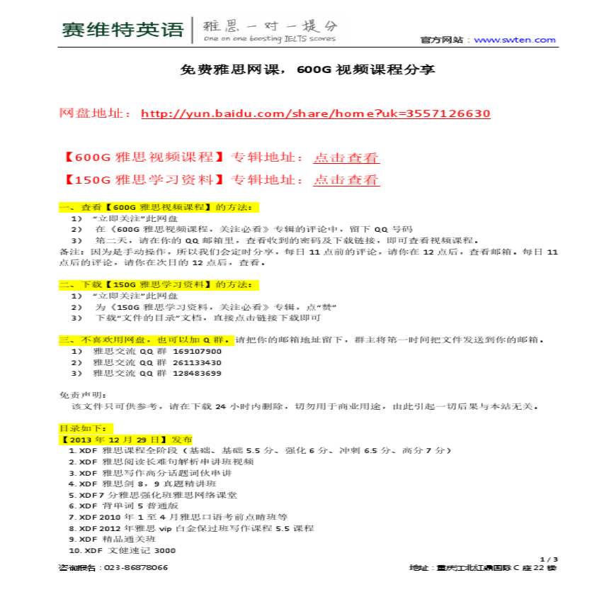 免费雅思网课,600G视频课程分享.pdf 免费下载