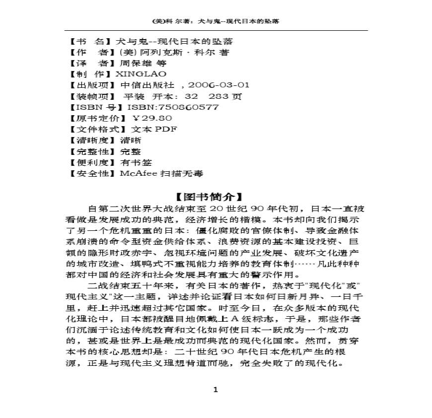 (美)科%2B尔着:犬与鬼--现代日本的坠落-资料下载,喜欢的朋友可以下载收藏!