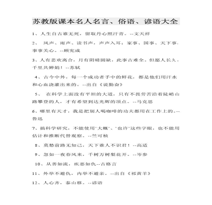 名人名言、俗语、谚语大全资料下载,喜欢的朋友可以下载收藏!