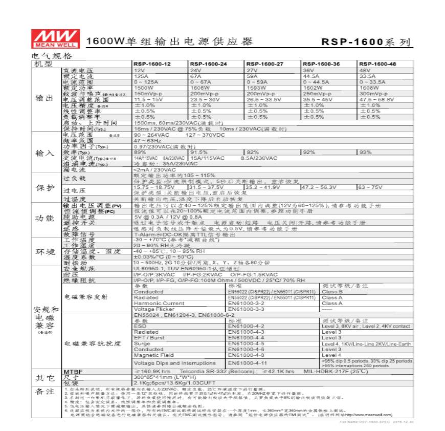 明纬电源可编程电源供应器RSP-1600-SPEC-CN.pdf 免费下载