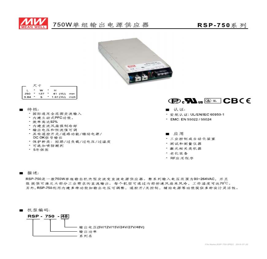 > 明纬电源可编程电源供应器RSP-750-SPEC-CN