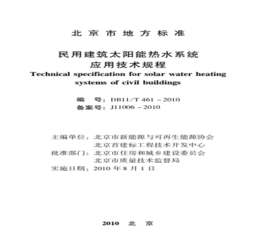 民用建筑太阳能热水系统应用技术规程DB11/T461-2010.pdf 免费下载