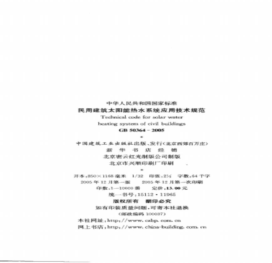 民用建筑太阳能热水系统应用技术规范 GB50364-2005.pdf 免费下载