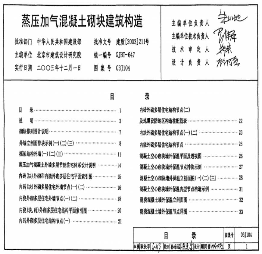 > 免蒸压加气溷凝土砌块建筑构造03J104(1)
